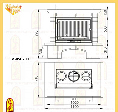 Столешница и постамент портала выполнены из дерева, а боковые колонны – из искусственного камня. Зона очага выделена углубленной деревянной аркой с декором.